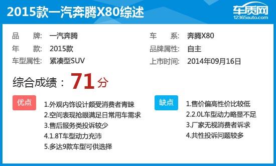 2015款一汽奔騰X80完全評價報告