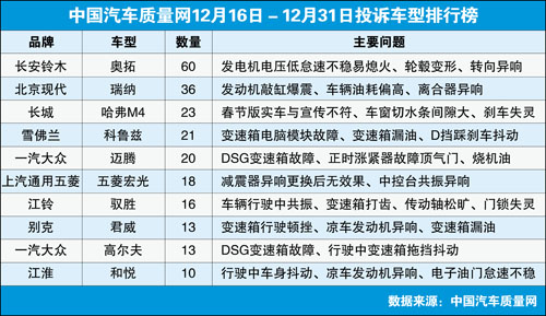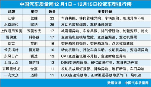 中國(guó)汽車(chē)質(zhì)量網(wǎng)2012年12月下半月投訴排行