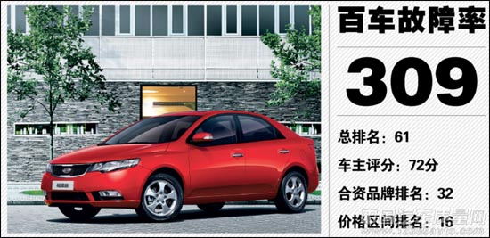 8-10萬家轎可靠性調查報告:起亞福瑞迪