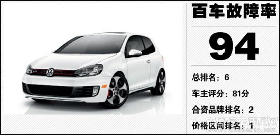10-15萬家轎可靠性調查報告:大眾高爾夫