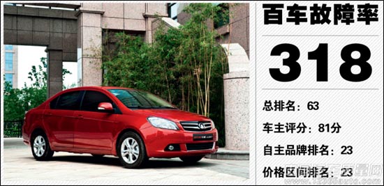 5-8萬元家用轎車:江淮和悅 最容易出現(xiàn)的問題 車門和車窗隔音不良、車身有異常響動(dòng)、油量表異常 、發(fā)動(dòng)機(jī)動(dòng)力不足、反應(yīng)遲鈍、行駛中車輛頓挫、闖車、出現(xiàn)不正常噪音 點(diǎn)評(píng) 江淮和悅在此次調(diào)查中有一個(gè)系統(tǒng)的低故障數(shù)表現(xiàn)讓人眼前一亮,它就是剎車系統(tǒng),...