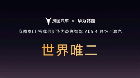 嵐圖新品發(fā)布會(huì)上,CEO盧放表示,嵐圖泰山搭載最新華為乾崑ADS 4頂級(jí)四激光,全球唯二。