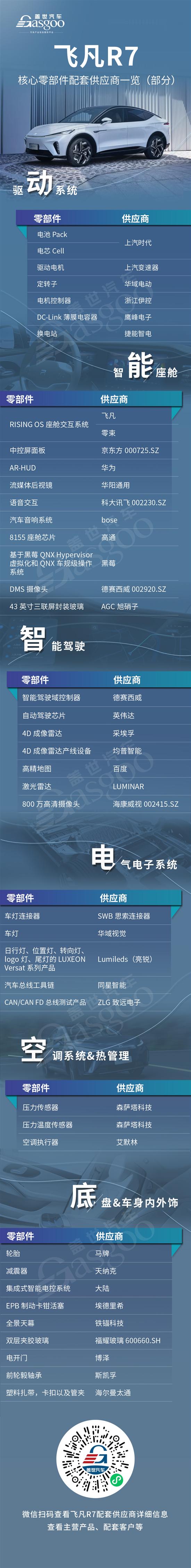 飛凡R7核心零部件配套供應(yīng)商一覽
