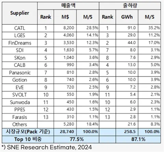在裝機量方面,寧德時代和比亞迪分別以35.2%和17%的市場份額占據(jù)前兩位,中國企業(yè)的總市場份額為52.2%。