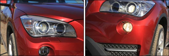 2014款華晨寶馬X1 xDrive 28i的前臉,遵循了寶馬一貫風(fēng)格,發(fā)動機蓋隆起的線條力量感十足。氙氣大燈和天使眼顯得格外高調(diào),配合上鍍鉻雙腎進(jìn)氣格柵,想必會吸引無數(shù)目光。出于是SUV車型的緣故,X1的霧燈位置設(shè)計的偏高,更增加了運動氣息。下部三段式鍍鉻裝飾片讓整個車頭不顯得過于平庸,點綴的恰到好處,搭配上造型立體的前唇層次感分明,雖然沒有實質(zhì)性的作用,但確實拉開了與低配車型的檔次,面子工程比較到位。